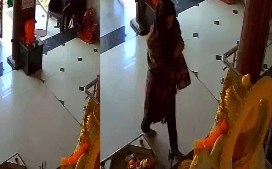यहां एक महिला ने पहले भगवान के दर्शन किए और फिर बकायदा भगवान के दरबार में ही चोरी करने लगी। यह घटना मंदिर परिसर में लगे सीसीटीवी कैमरे में कैद हो गई,फिलहाल पुलिस इस पूरे मामले की जांच में जुटी हुई है और महिला की तलाश की जा रही है।