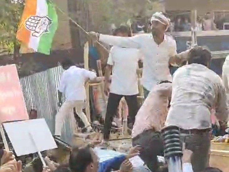 बिलासपुर में कांग्रेस का विरोध मार्च, कलेक्टर कार्यालय घेराव में पुलिस से भिड़े प्रदर्शनकारी
