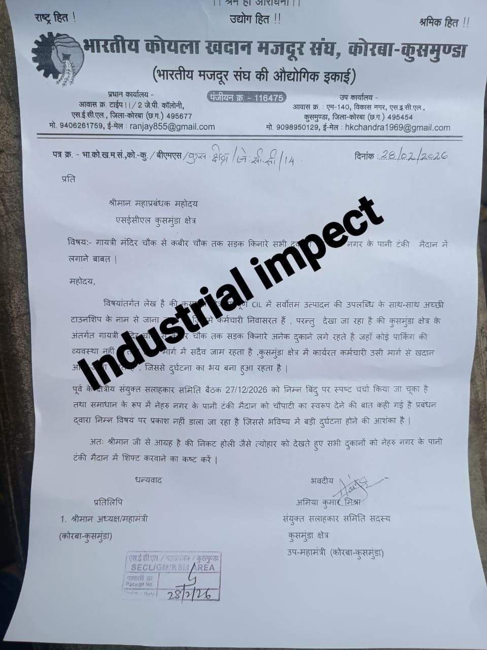 • SECL कुसमुंडा प्रबंधन ठेकेदार पर मेहरबान? यूनियन का विरोध