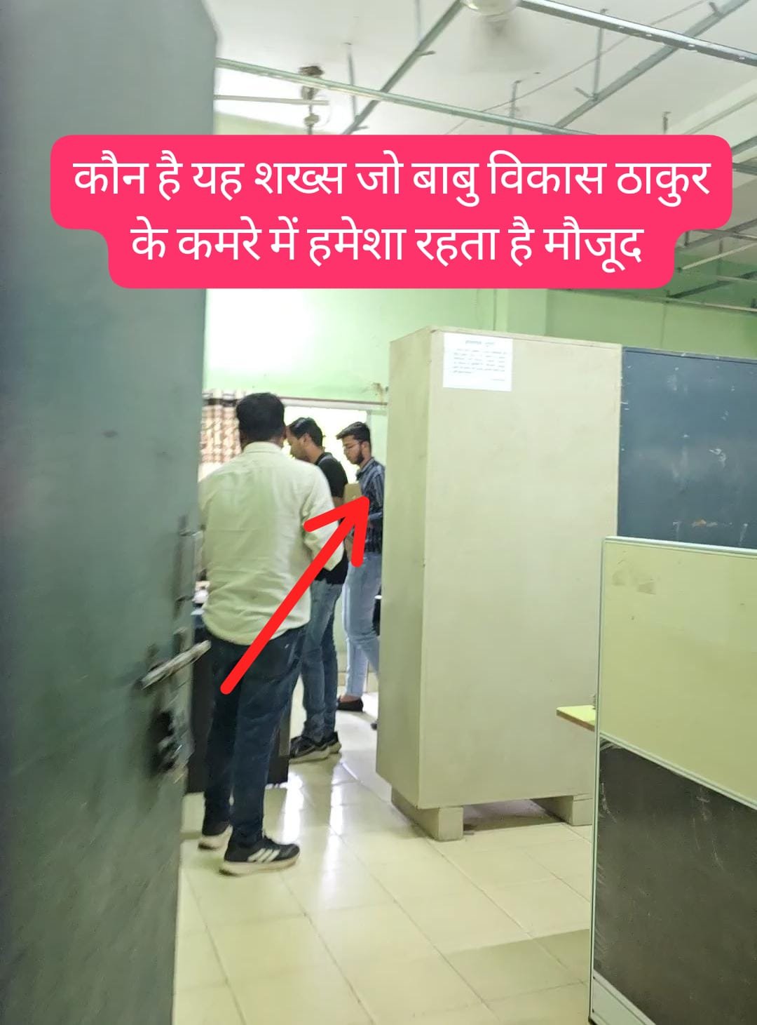 गौर से देखिए इस तस्वीर में जिसमें कमरा नंबर 3 में बैठे शाखा प्रभारी विकास ठाकुर दो अन्य शख्स जो कथित एजेंट के रूप में कार्य करते हैं से कार्य संबंधी बातचीत की जा रही है। ये वही लोग है जिनके द्वारा जिला परिवहन कार्यालय के सामने बाकायदा अवैध रूप से कब्जा कर दुकान का संचालन लंबे समय से किया जा रहा हैं। इतना ही नहीं एक शख्स जिनका नाम लालू राठौर है जिसके खिलाफ हाल ही में शिकायत हुई है जिसमें शाखा प्रभारी विकास ठाकुर का संरक्षण प्राप्त है।