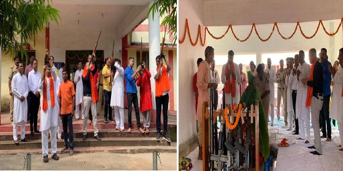 एसपी ने जिलेवासियों को दशहरा पर्व की बधाई दी. शस्त्रों की पूजा करने के बाद हवाई फायर भी किया गया. कोरबा पुलिस अधीक्षक सिद्धार्थ तिवारी के साथ जिला पुलिस बल में तैनात सभी सीएसपी, डीएसपी और थानेदार सहित पुलिस बल के जवान मौजूद रहे. पुलिस के अधिकारियों और कर्मचारियों ने हवाई फायरिंग कर शस्त्र पूजा की. इस दिन एक तरह से हथियारों की टेस्टिंग भी हो जाती है. हर साल आश्विन माह के शुक्ल पक्ष की दशमी तिथि पर विजयादशमी मनाई जाती है. इस दिन शस्त्र पूजा भी की जाती है. धार्मिक मान्यता है कि आश्विन माह के शुक्ल पक्ष की दशमी तिथि को शस्त्र पूजा करने से युद्ध में अजेय होने का वर मिलता है.