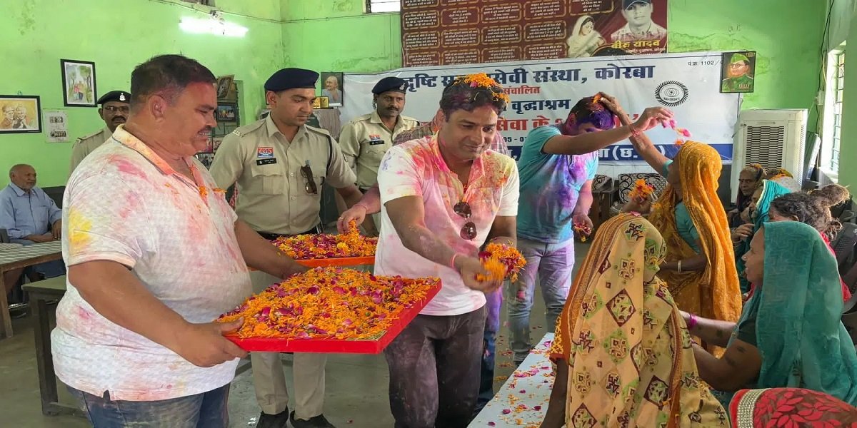 कोरबा पुलिस ने वृद्धाश्रम में खेली रंगों और फूलों की होली, बुजुर्गों के चेहरे पर बिखरी खुशियाँ