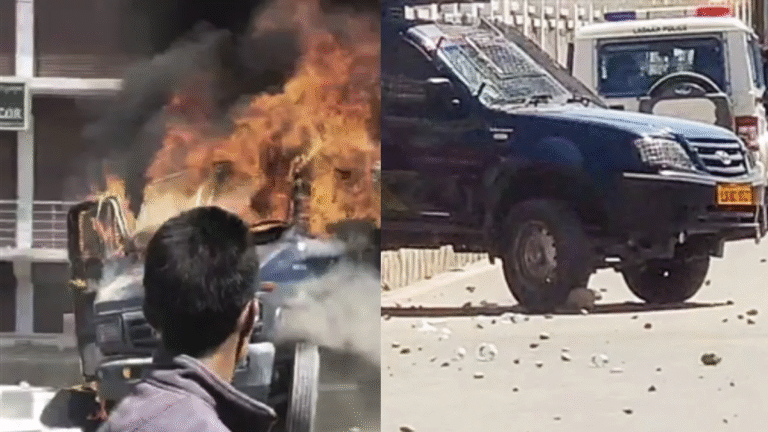 leh protest violence लेह। लद्दाख में सामाजिक कार्यकर्ता सोनम वांगचुक के नेतृत्व में चल रहे आंदोलन ने मंगलवार को अचानक उग्र रूप ले लिया। छात्रों और पुलिस के बीच हुई तीखी झड़प के बाद हालात बेकाबू हो गए, जिसमें CRPF की एक गाड़ी और भारतीय जनता पार्टी (BJP) के स्थानीय कार्यालय को आग के हवाले कर दिया गया। हिंसा में अब तक 4 लोगों की मौत और कई के घायल होने की पुष्टि हुई है।