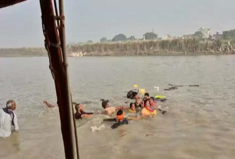 मौके पर मौजूद लोगों ने बताया कि नाव में क्षमता से अधिक श्रद्धालु सवार थे और नदी के बीच में पहुंचते ही नाव का संतुलन बिगड़ गया। घटना की जानकारी मिलते ही पुलिस और प्रशासनिक अधिकारी भी मौके पर पहुंचे और हालात का जायजा लिया।