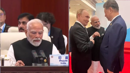 नई दिल्ली।  प्रधानमंत्री नरेंद्र मोदी इस समय चीन की यात्रा पर हैं। चीन में हो रहे शंघाई सहयोग संगठन (एससीओ) पर पूरी दुनिया की नजरें टिकी हुई हैं। आज चीन के तियानजिन में पीएम मोदी ने रूसी राष्ट्रपति पुतिन और चीनी राष्ट्रपति चिनफिंग से मुलाकात की।
