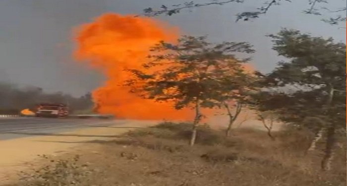 महासमुंद : छत्तीसगढ़ के महासमुंद जिले में नेशनल हाईवे 53 पर सोमवार को बड़ा हादसा हुआ है. पिकअप में रखा गैस सिलेंडर अचानक ब्लास्ट हो गया, जिसके बाद बड़ा धमाका हुआ. आग की लपटें काफी ऊपर तक उठी.