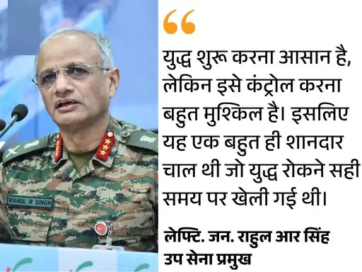 उन्होंने कहा कि यह संघर्ष आधुनिक युद्ध की कठिनाइयों को उजागर करने वाला था और इससे सेना को कई महत्वपूर्ण सबक मिले। डिप्टी COAS ने बताया कि DGMO लेवल पर बातचीत के दौरान पाकिस्तान को हमारे महत्वपूर्ण वेक्टरों की लाइव अपडेट भी मिल रही थीं। उन्होंने कहा कि अब इस अनुभव ने यह साबित किया कि हमें अपनी एयर डिफेंस क्षमताओं को और ज्यादा मजबूत करना होगा।